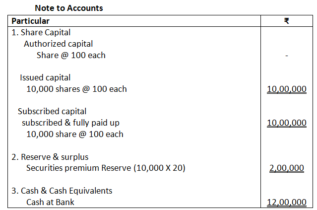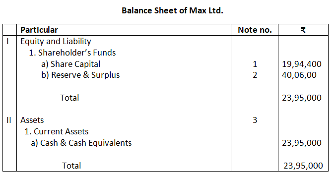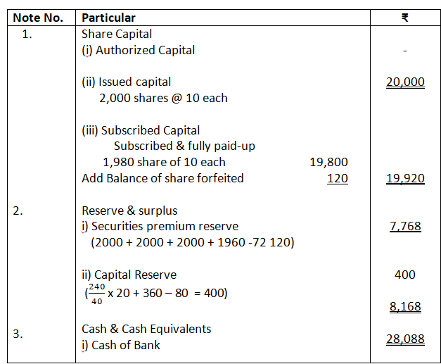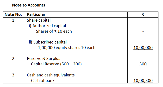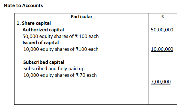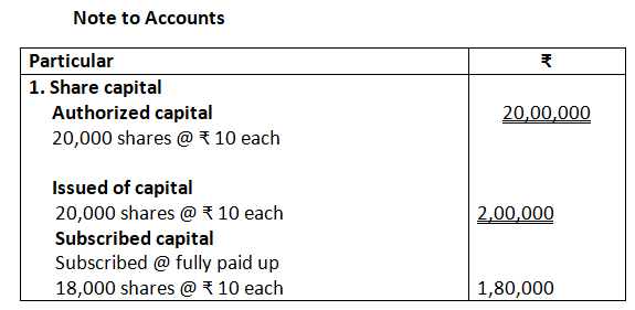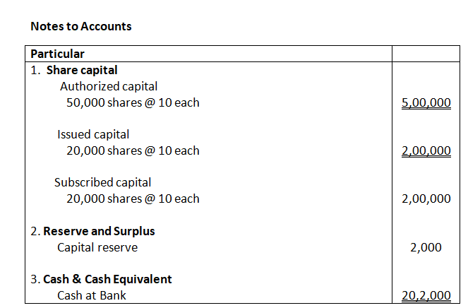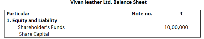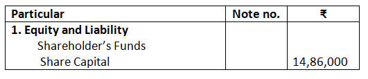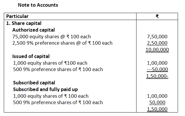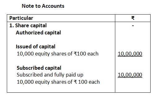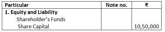 Show the Share Capital in the Balance Sheet of the company as per Schedule III, Part I of the Companies Act, 2013. Also prepare ‘Notes to Accounts’ for the same.