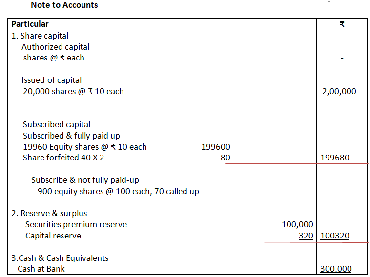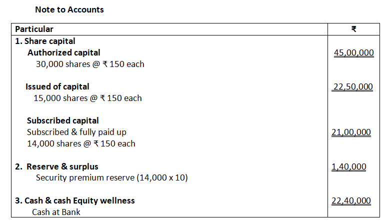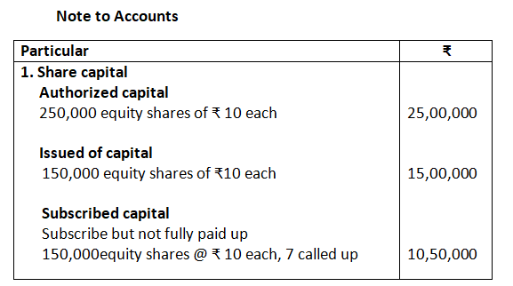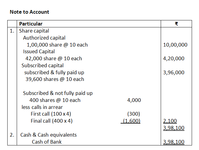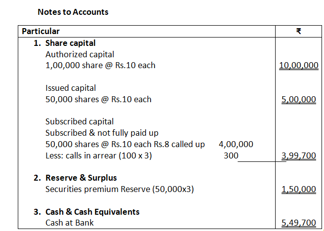 Present the ‘Share Capital’ in the balance sheet of the company as per schedule lll, part I of the companies Act, 2013. Also ‘Notes to Accounts’ for the same.