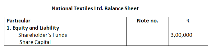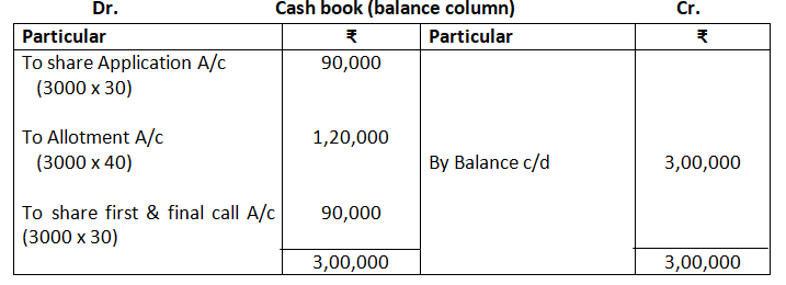 14. National Textiles Ltd. was registered with the authorized of ₹ 3,00,000 divided into 3,000 shares of ₹ 100 each, which were offered to the public. Amount payable as ₹ 30 per share on application, ₹ 40 per share on allotment and ₹ 30 per share on first and final call. These shares were fully subscribed and all money was duly received.