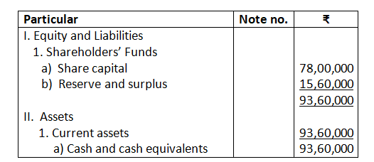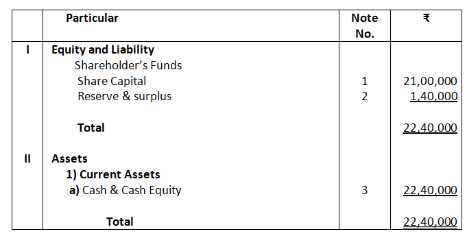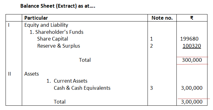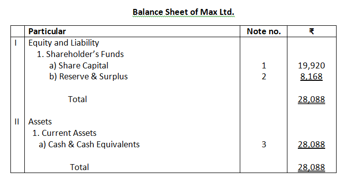 Share were fully subscribed and amounts called were duly received. First and final call was not yet made. Prepare balance Sheet of the company showing share capital.