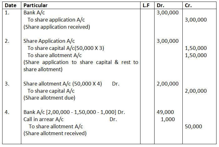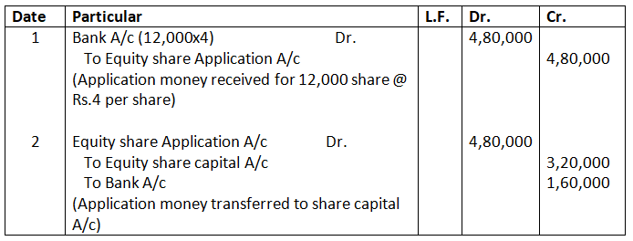The company received application for 4,00,000 shares. Allotment was done as follows: