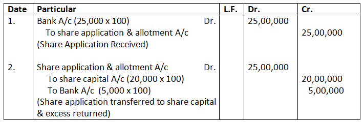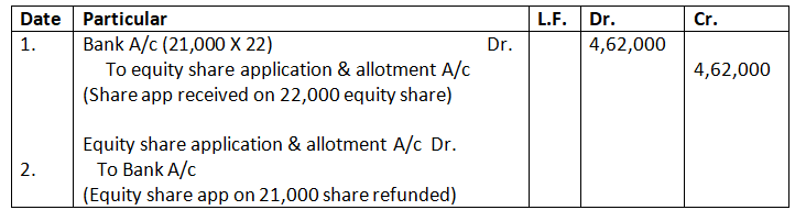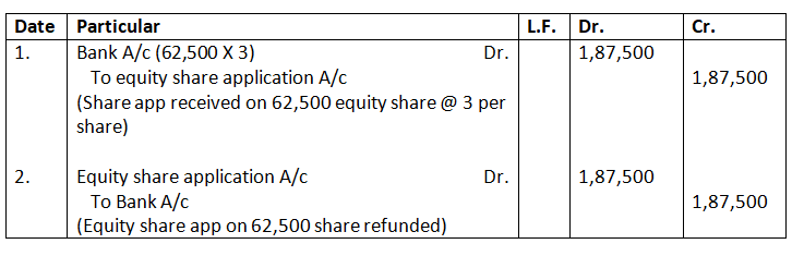 As actual money of the application is (70,000* 3) ₹ 21,00,000 and on Application, three are ₹ 27,00,000 is received. Thus it is the case of over-subscription.