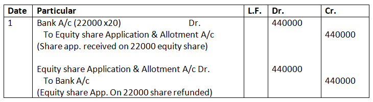 Case 3 : Applications for 20,000 shares was refused allotment and pro rata allotment was made to remaining.