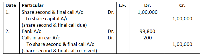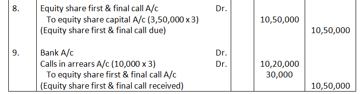 The issue was fully subscribed. All amount were duly received except the first and final call money on Rs.4,000 equity shares.