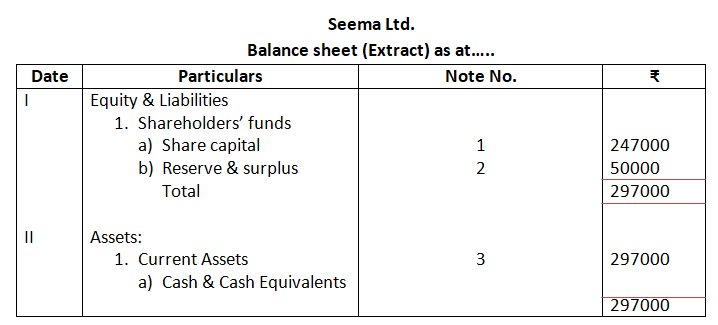 Shri Ganga Ltd. Balance Sheet (Extract) as at……..