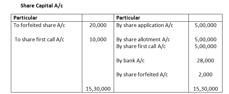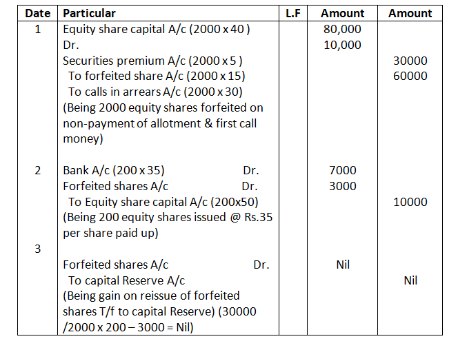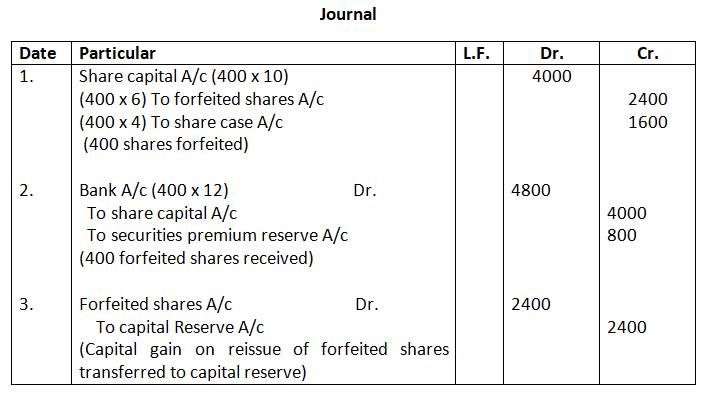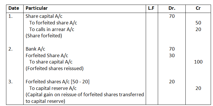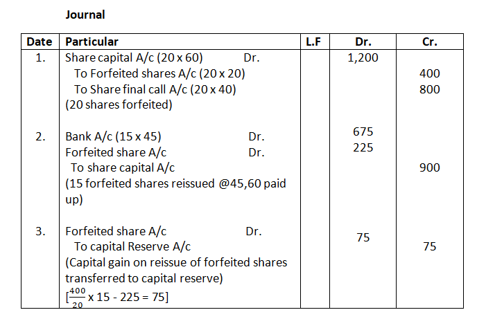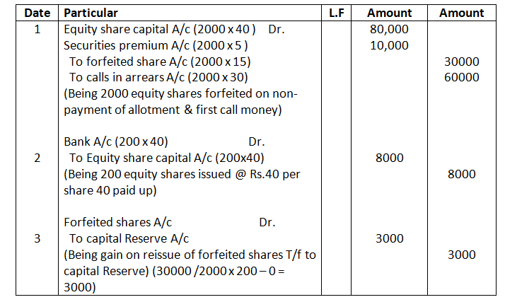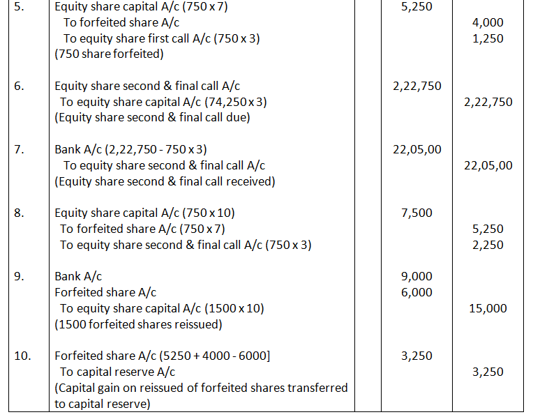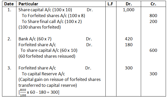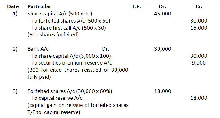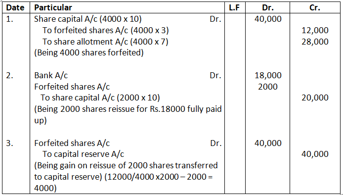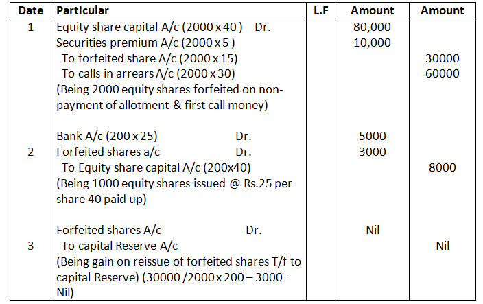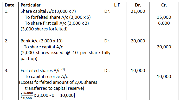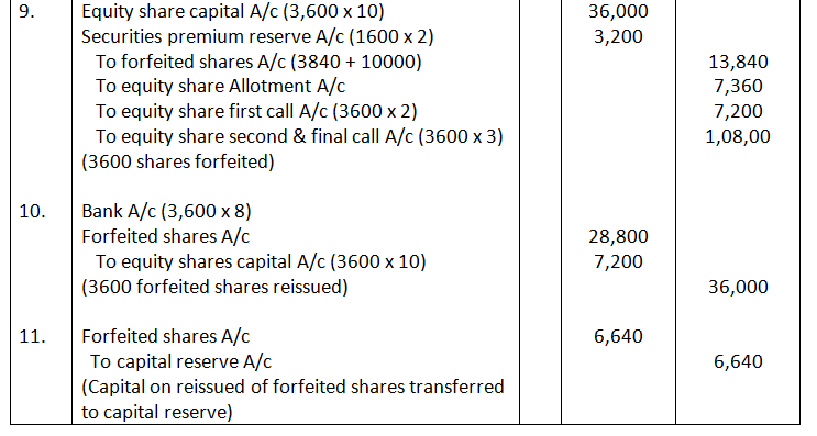 Divij’s shares were forfeited after the first and final call. Half of the forfeited shares were reissued @ 10 per share fully paid.