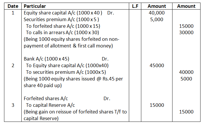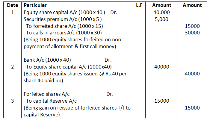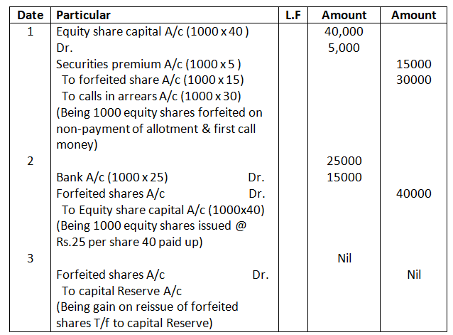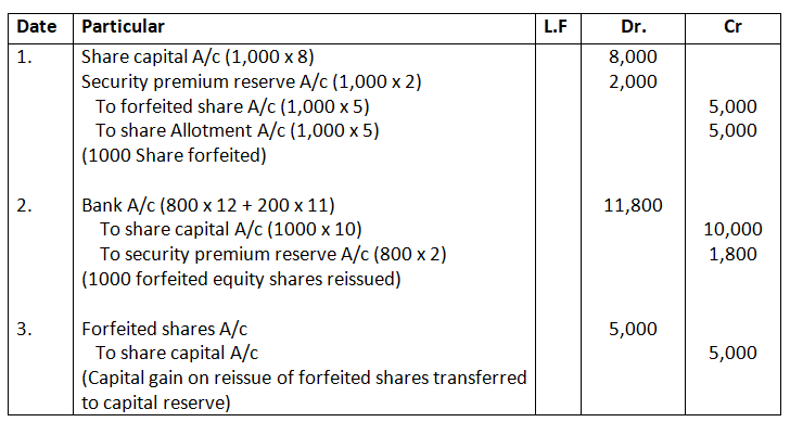 Forfeited Amount = 1000 x 5 = ₹ 5,000
