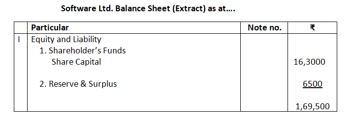 Prepare an extract of Balance Sheet of Suhani Ltd. as per schedule lll, per I of the companies Act, 2013 disclosing the share capital.