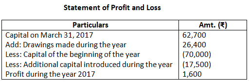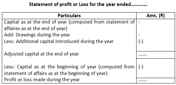 A statement of profit and loss is repaired to ascertain the exact amount of profit or loss made during the year. The difference between the opening and closing capital represents its increase or decrease which is to be adjusted for withdrawals made by the owner or any fresh capital introduced by him during the accounting period in order to arrive at the amount of profit or loss made during the period.