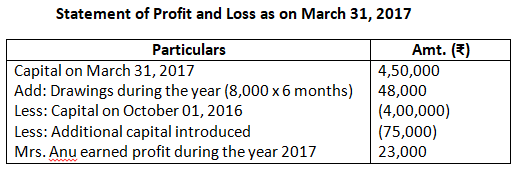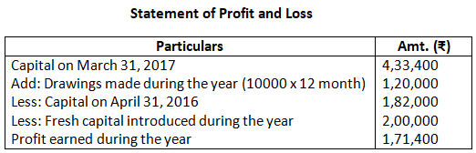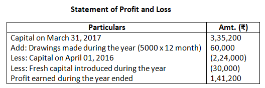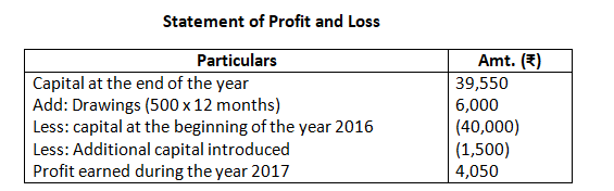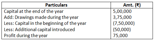 Capital in the beginning = Capital at the end + Drawings – (Fresh Capital Introduced + Profit)