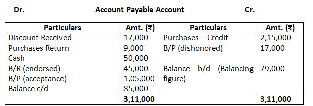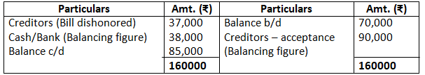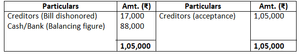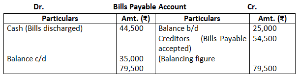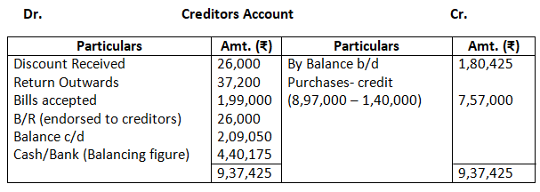 Bills payable discharged is Rs.88,000 and the opening balance of creditors is Rs.79,000.