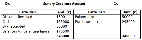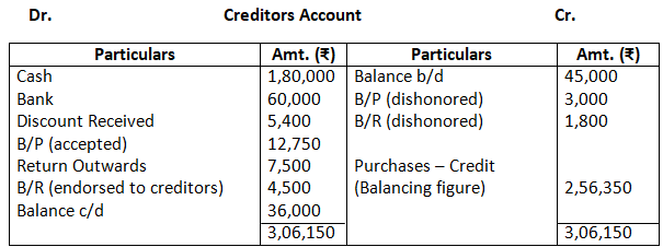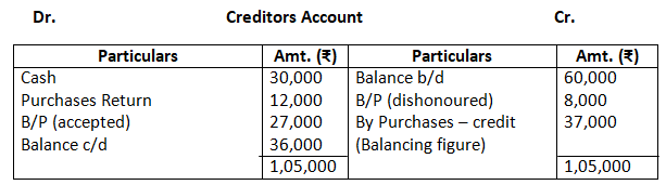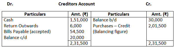 - Similarly prepare the account of total creditors account and derive the missing figure.