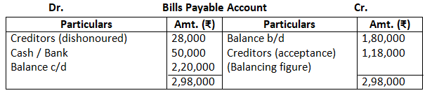21. Prepare the bills payable account from the following and find out missing figure if any: