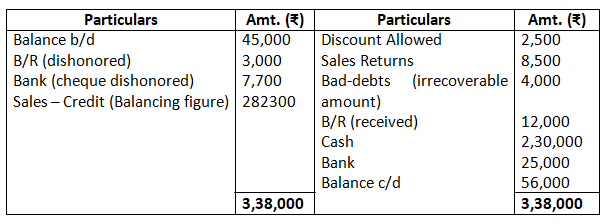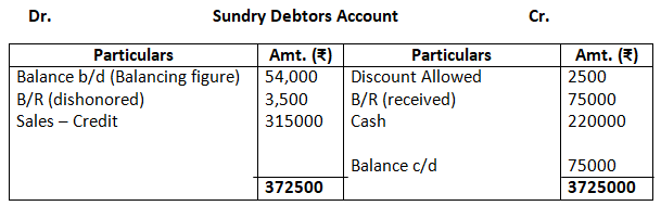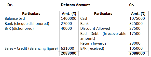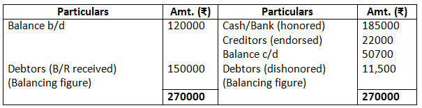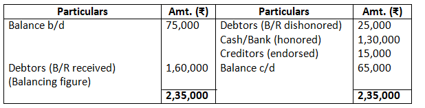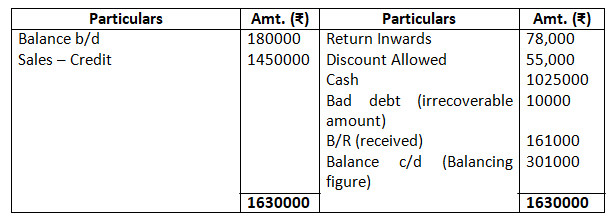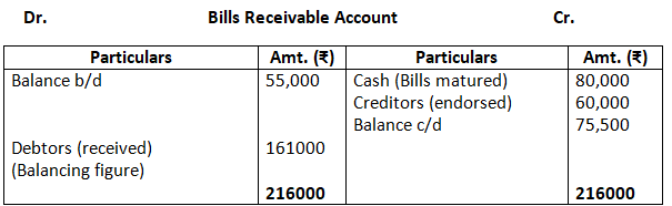 The missing figure in the bills receivable account – B/R received from debtors Rs.161000 and the missing figure in the debtors account-closing balance is RS.301000.