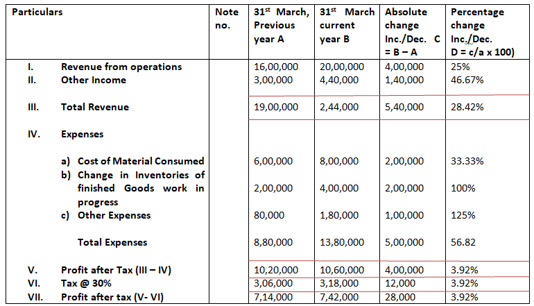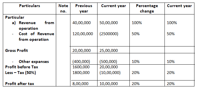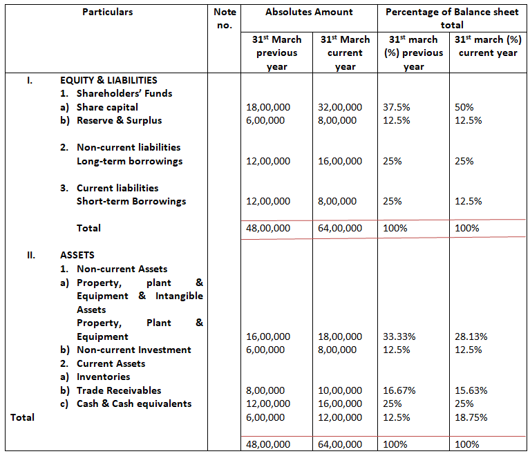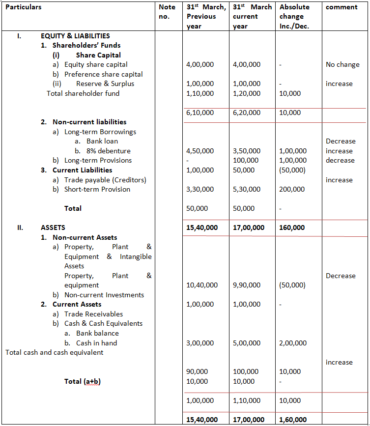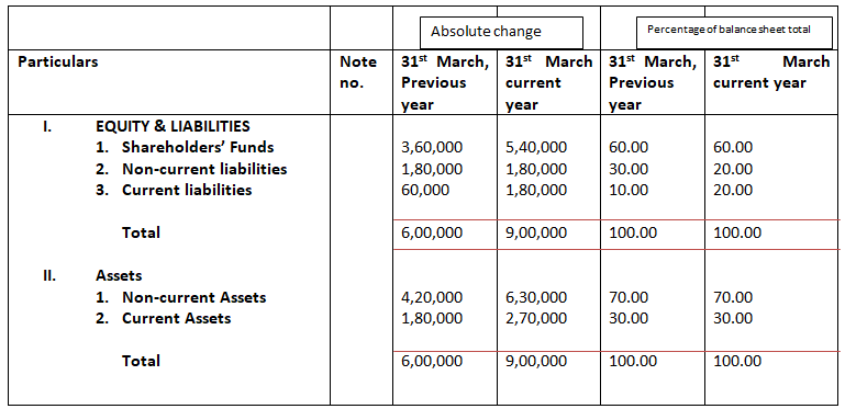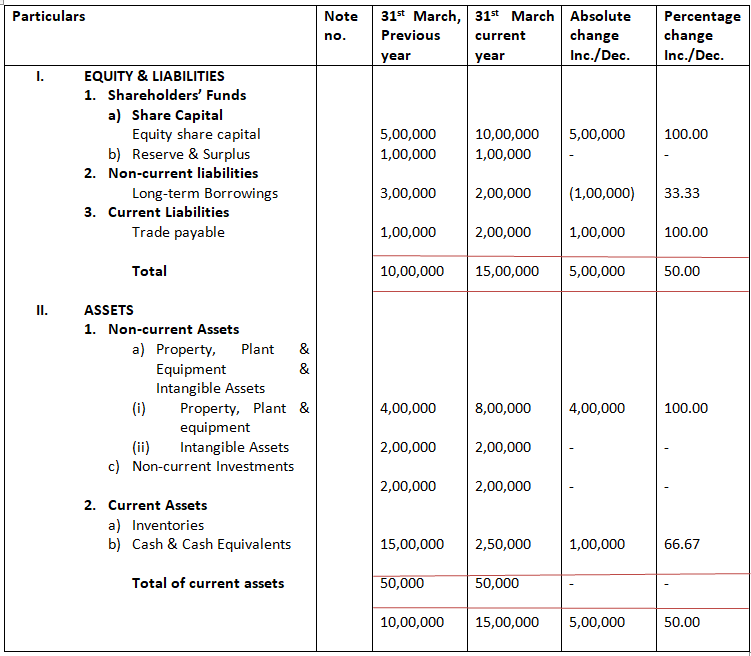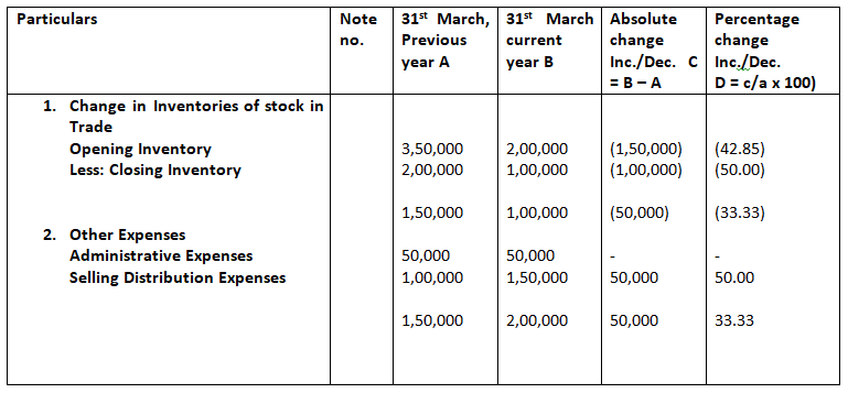 | Particulars | Note no. | 31st March, Previous year | 31st March current year | Absolute change Inc./Dec. Amount | Percentage change Inc./Dec.% |