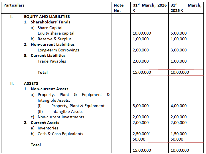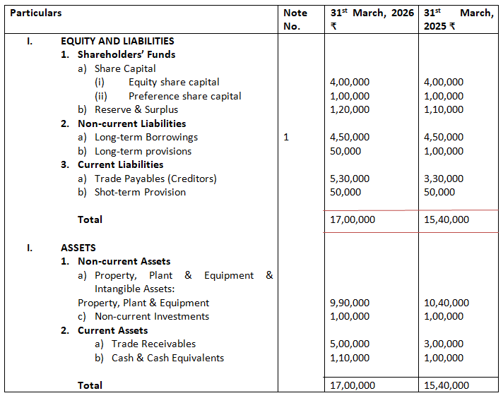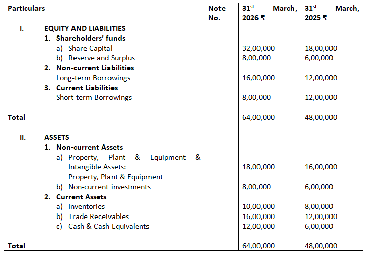 | Particulars | Note No. | 31st March, 2026 ₹ | 31st March, 2025 ₹ |