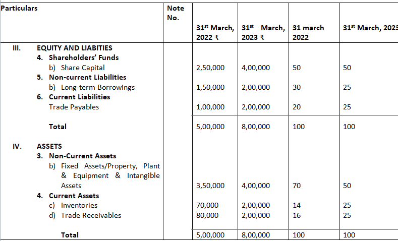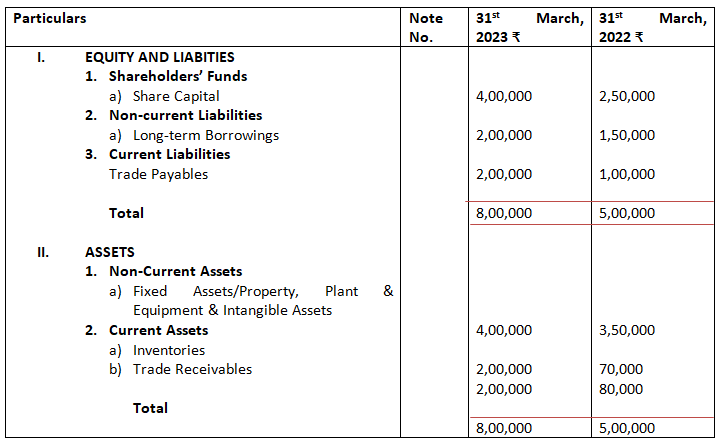 a) Share Capital b) Reserve & Surplus 2. Non-current Liabilities Long-term Borrowings 3. Current Liabilities Trade Payables Total