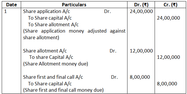 Application were received for 1,60,000 shares. Allotment was made on pro-rata basis. Excess money on application was adjusted against the amount due on allotment.
