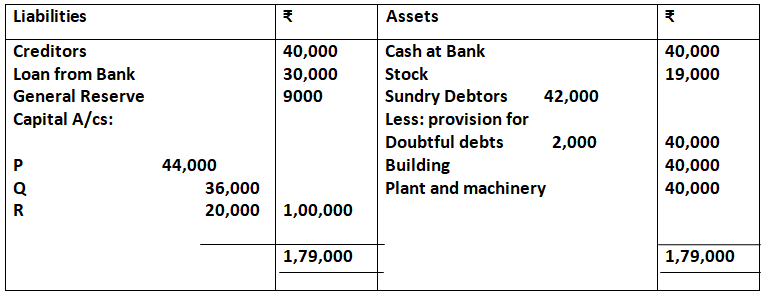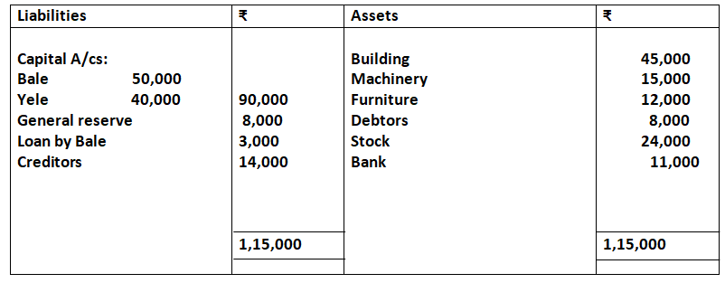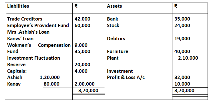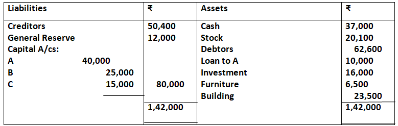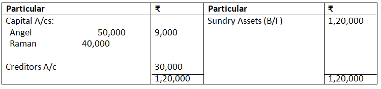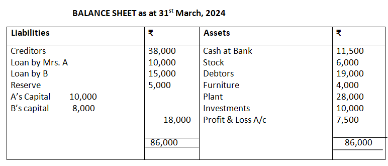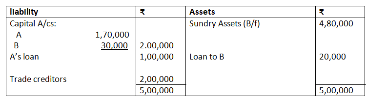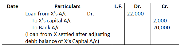 4. If a Loan from X, a partner, of Rs.22,000 exists in the liabilities side of the Balance Sheet of the firm and X’s Capital Account has a debit balance of Rs.2,000.