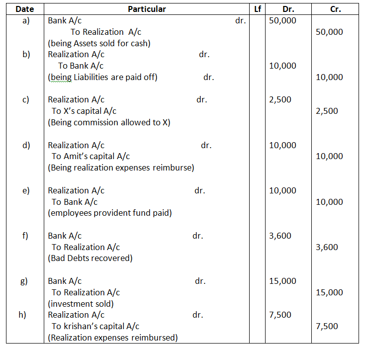 - Realization expenses were ₹ 15,000. The firm had agreed with Amrit, to reimburse him ₹ 10,000.