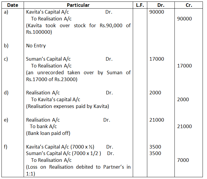 - Kavita took over amounting to ₹ 1,00,000 at ₹ 90,000.