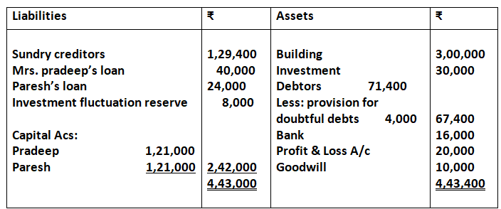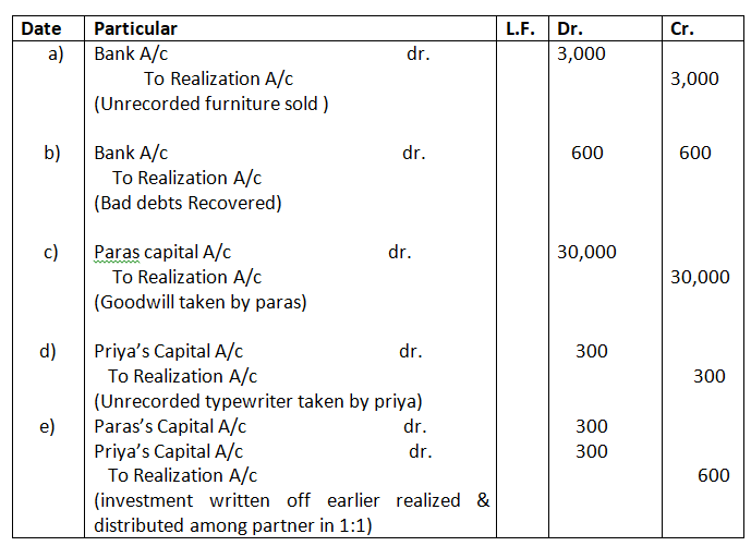 - Paras agreed to take over the firm’s goodwill (not recorded in the books of the firm,) at a valuation of 30,000.