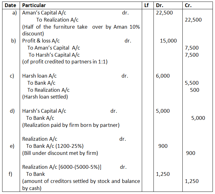 14. Aman and Harsh were partner in a firm, dissolved their firm. Pass necessary journal entries for the