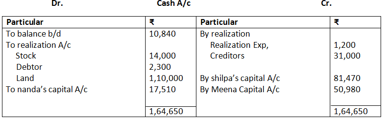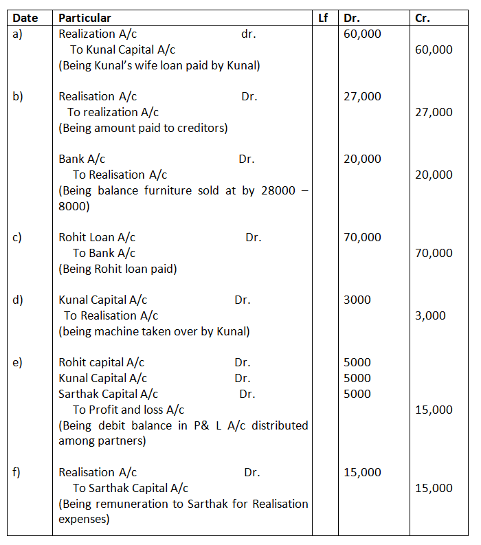 - Sarthak paid the realization expenses of ₹ 16,000 and was to be paid ₹ 15,000 including expenses for completing dissolution process.