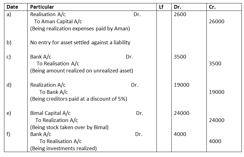 - Realization expenses of the firm amounting to ₹ 2,600 were paid by partner, Aman.