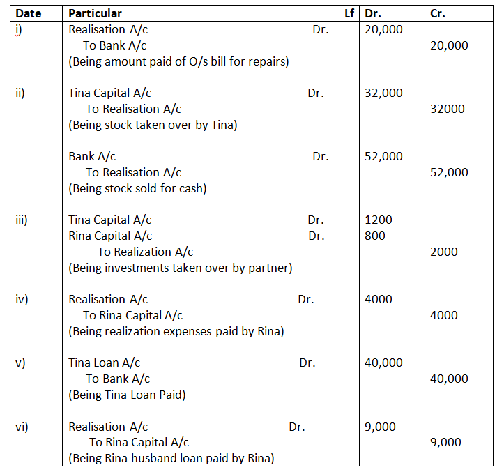 (v) Tina had given a loan of rs.40,000 to the firm which was duly paid.