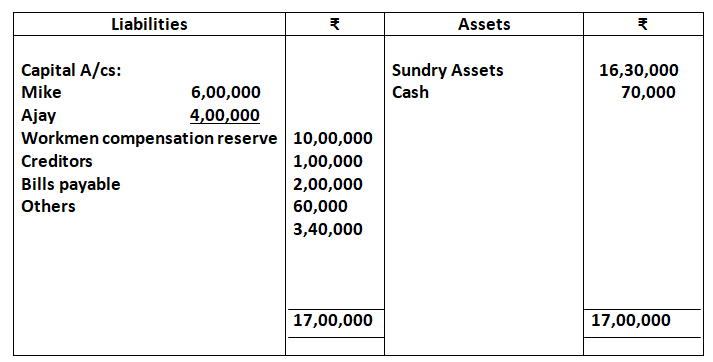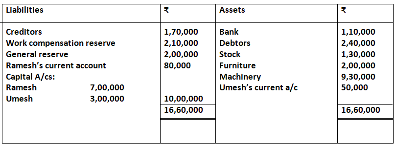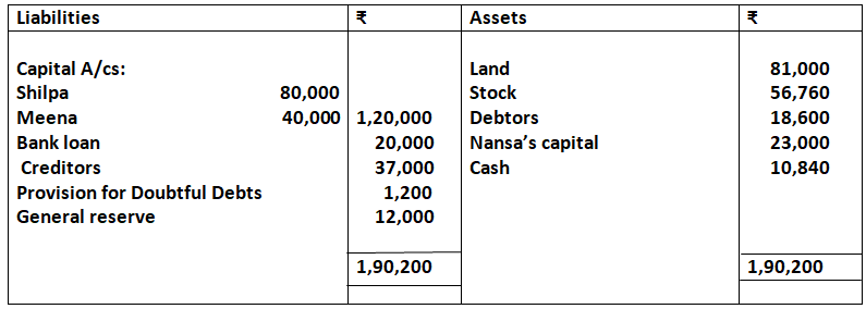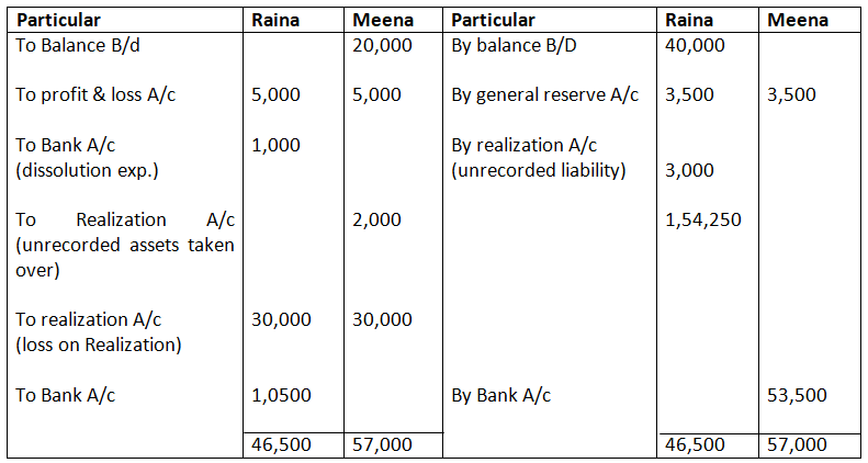 - An unrecorded assets of ₹ 2,000 was taken by Meena while Raina paid an unrecorded liability of ₹ 3,000.
