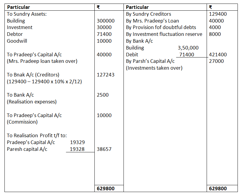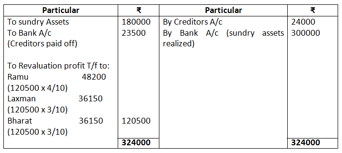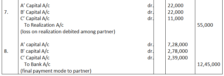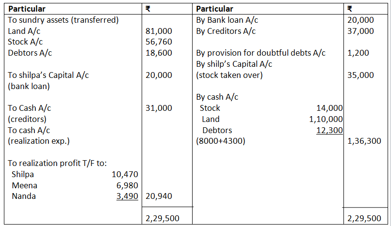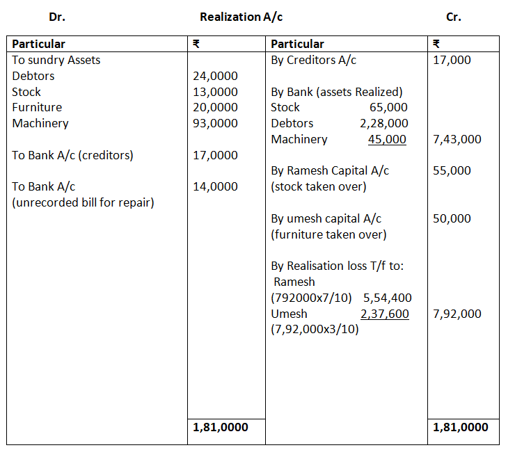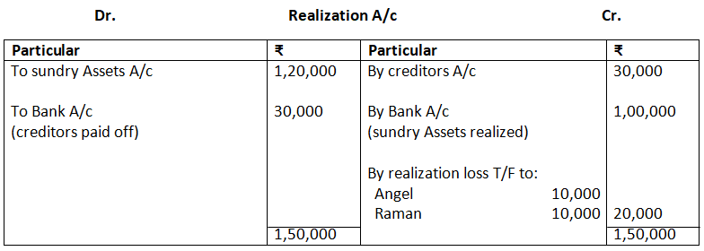 - Realization expenses of ₹ 10,000 were to be borne by Raman, a partner, but were paid by the firm.