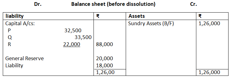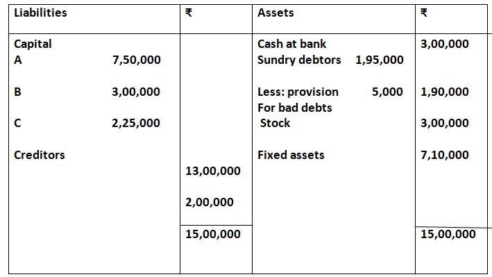- Profit & Loss Account had credit balance of ₹ 15,000 on the date of dissolution.