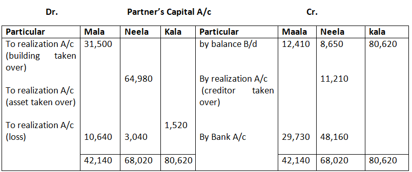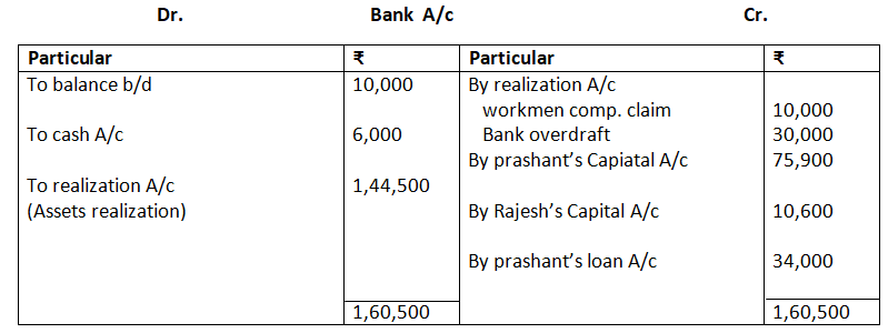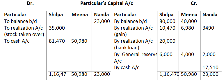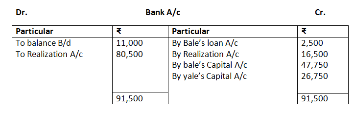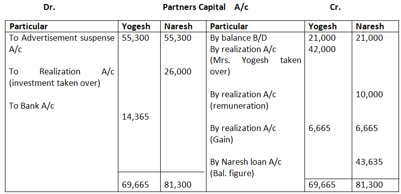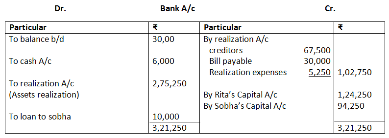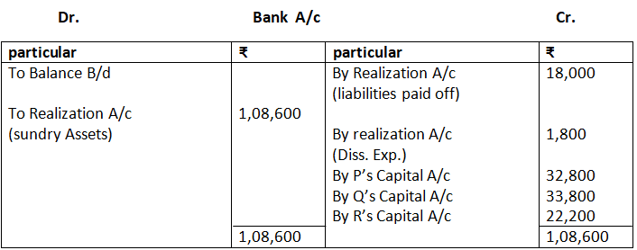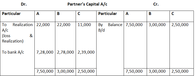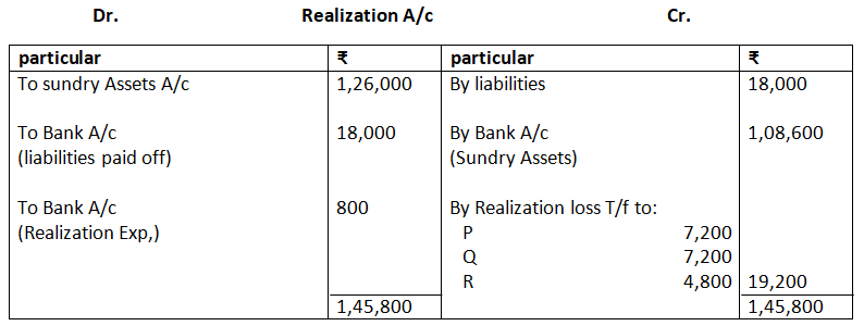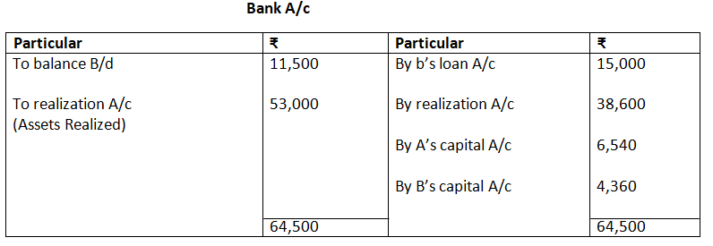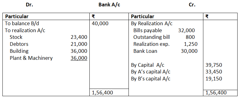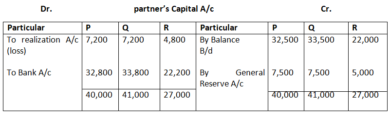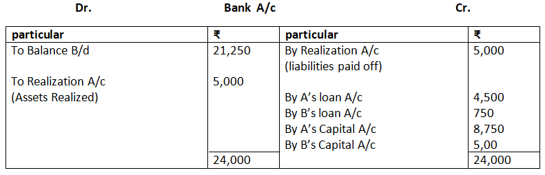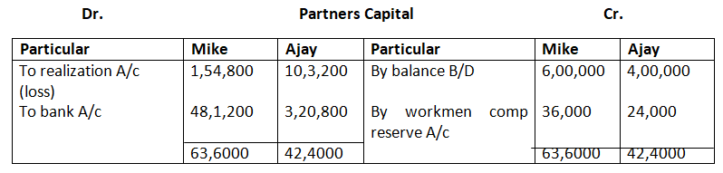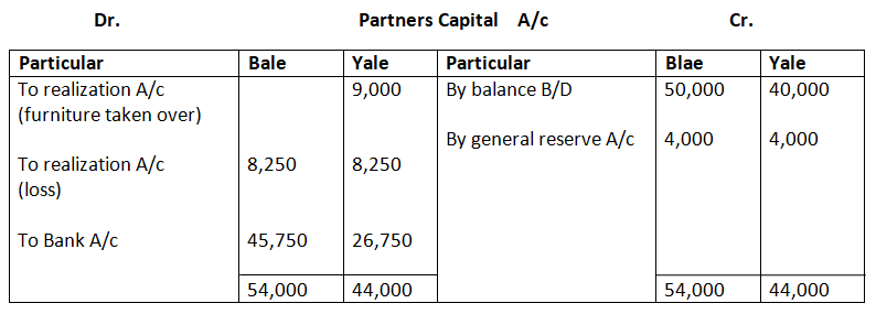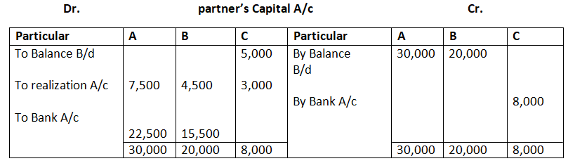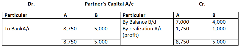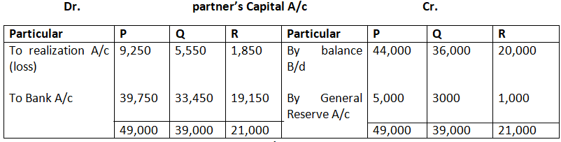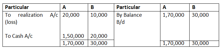 Prepare Realization Account, partner’s Capital Accounts and Bank Account.
