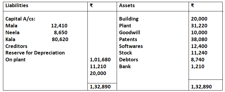 - There were 100 shares of ₹ 10 each in stat limited acquired at a cost of ₹ 2,000 which had been written- off completely form the books. These shares are valued @ ₹ 6 each and divided among the partners in their profit-sharing ratio.