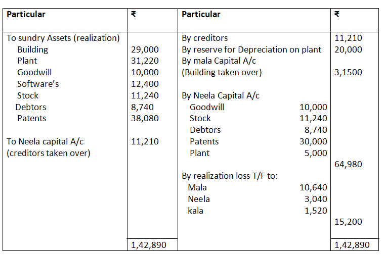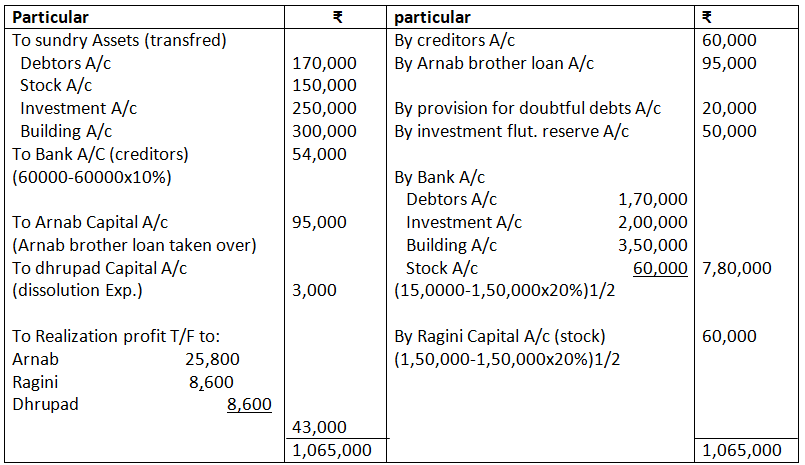- 50% of the stock was taken over by Ragini at market price which was 20% less than the book value and the remaining was sold at market price.