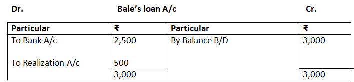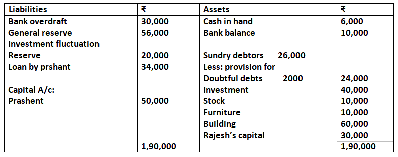 - Remaining stock of ₹ 30,000 was taken over by Bimal, a partner at a discount of 20%.