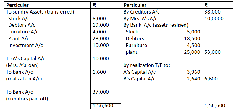 - Dissolution resulted in a loss of ₹ 60,000 from the realization of assets and settlement of liabilities.