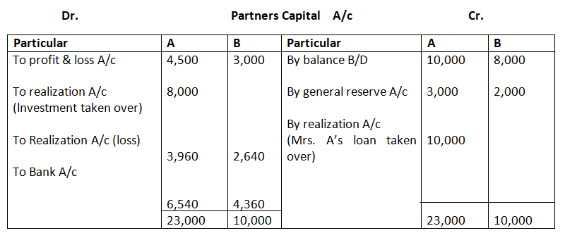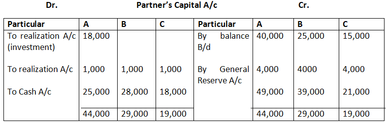 - For the purpose of dissolution, investment were valued at ₹ 18,000 and A took over the investment at this value.