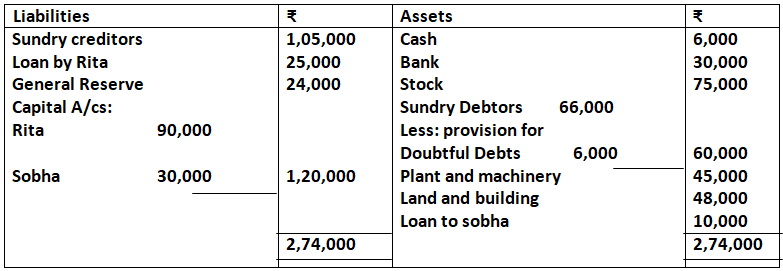 36. Rita and Sobha are partners in a firm, fancy Garments exports, sharing profits and losses equally. On 1st April, 2025, the Balance Sheet of the firm was: