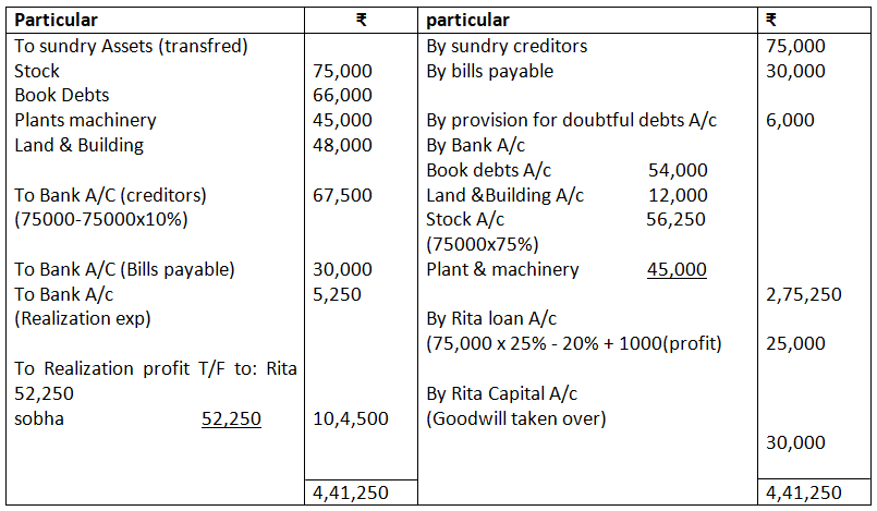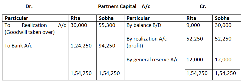 - Rita took the goodwill of the firm at a value of ₹30,000.
