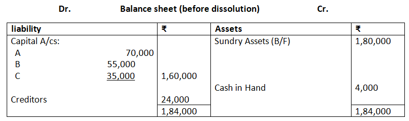- Expenses on dissolution amounted to ₹ 19,000 and the same were paid by the firm.