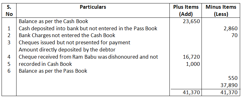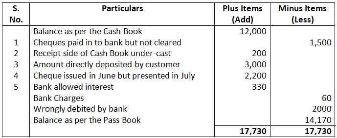 • A cheque of Rs.1,200 debited in the Cash Book was omitted to be banked.