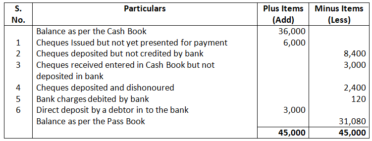 On 31st March, 2025, a merchant’s Cash Book showed a credit bank balance of 10,500 but due to the following reasons the Pass Book showed a difference.