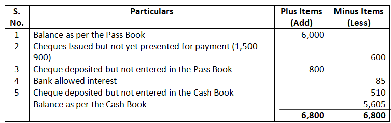 2. Before that date, you had issued cheque amounting to 1,500 of which cheques of 900 have been presented for payment.
