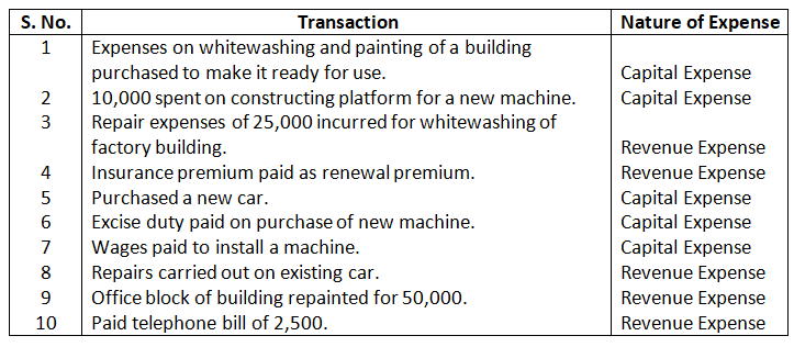 Classification of Capital and Revenue Expenditures: