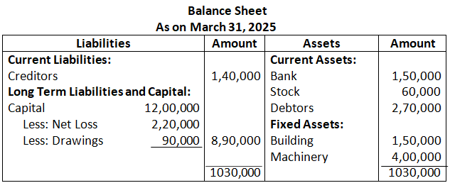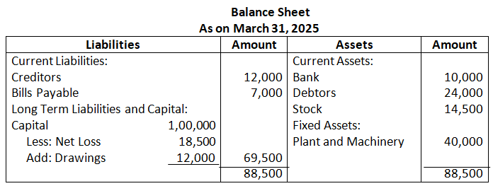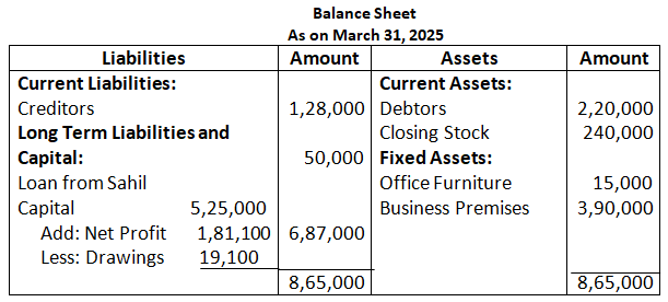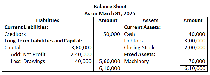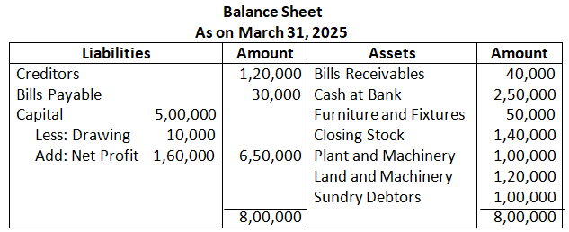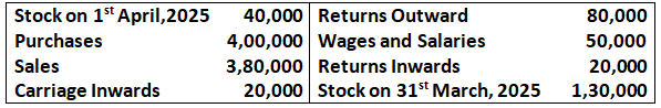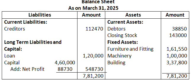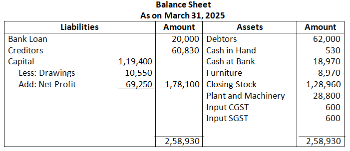 (b) Net Sales for the year ended 31st March, 2025 is Rs.4,50,000. If Gross Profit is 25% of cost, find Gross Profit and cost of Goods Sold.
