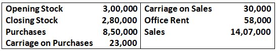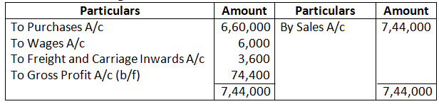 Adjusted Purchases 6, 60,000; Sales 7, 44,000; Closing Stock 50,400; Freight and Carriage Inwards 3,600; Wages 6,000; Freight and Cartage Outwards 2,000