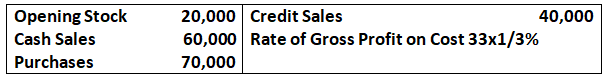 the rate of gross profit is 33 1/2% on cost. this is equivalent to 1/3 of the cost of goods sold(COGS)