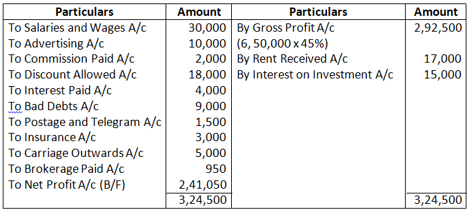 The Gross Profit was 45% of Sales, which amounted to 6, 50,000.